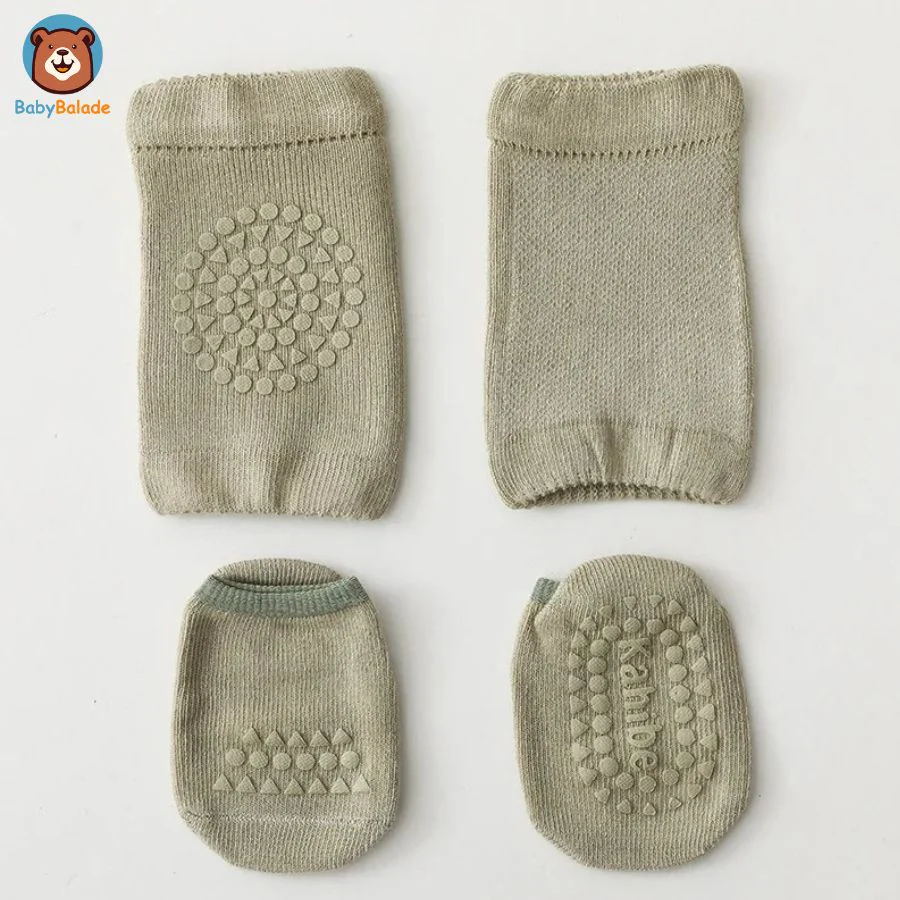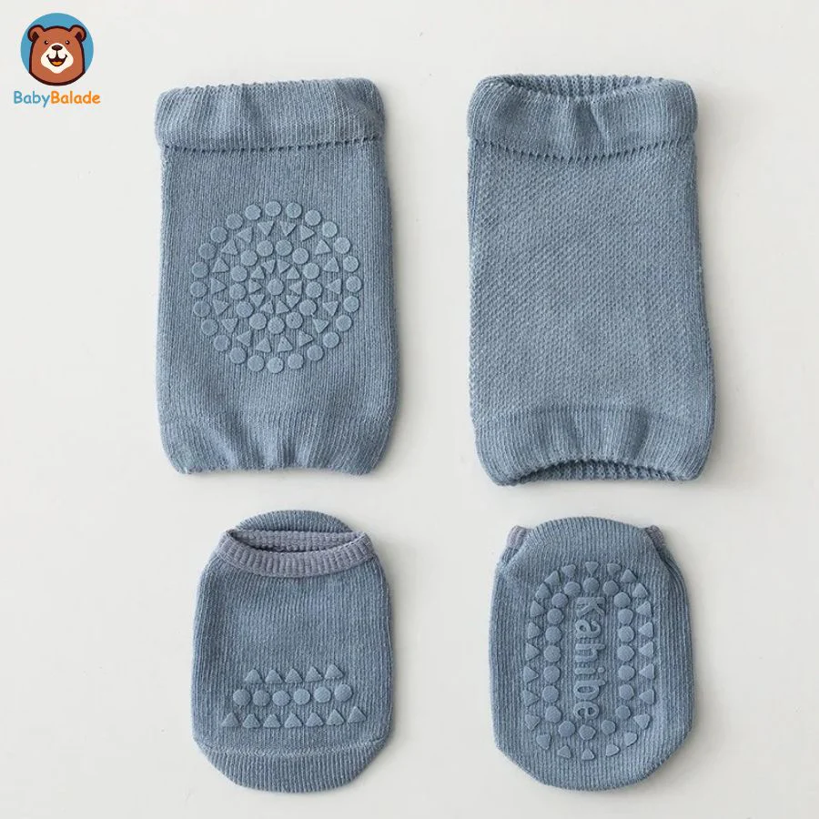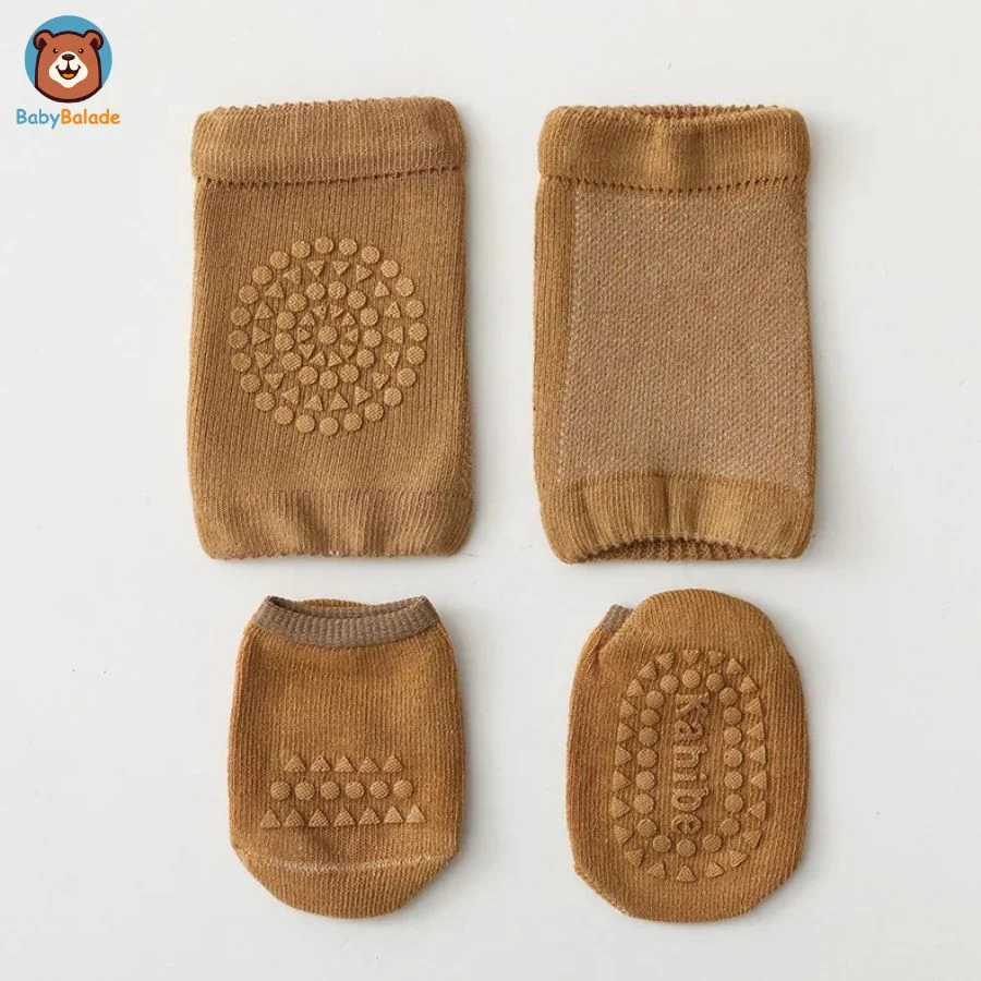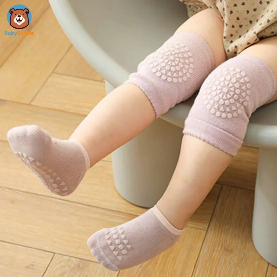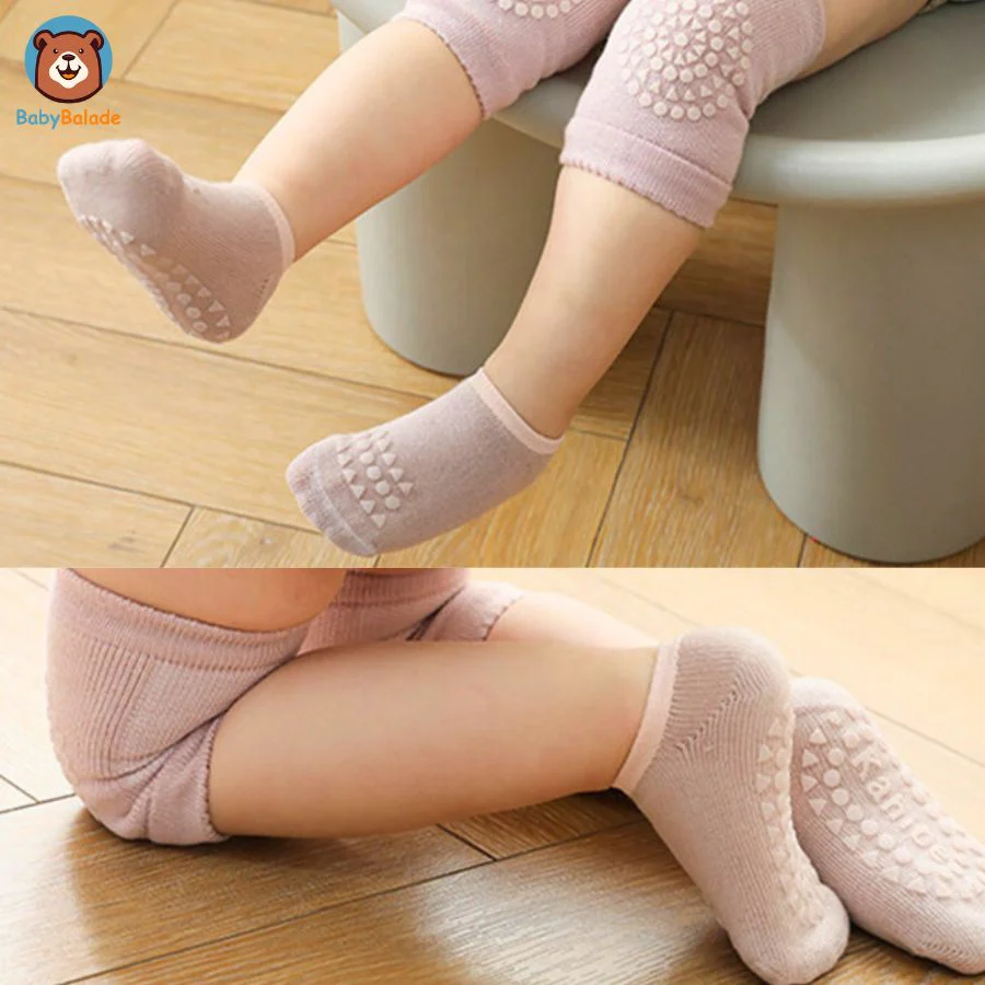 Des surfaces lisses aux terrains inégaux ou surfaces rugueuses, cet ensemble de « Chaussette antidérapante bébé et Genouillère » est conçu pour garder bébé stable et serein.
