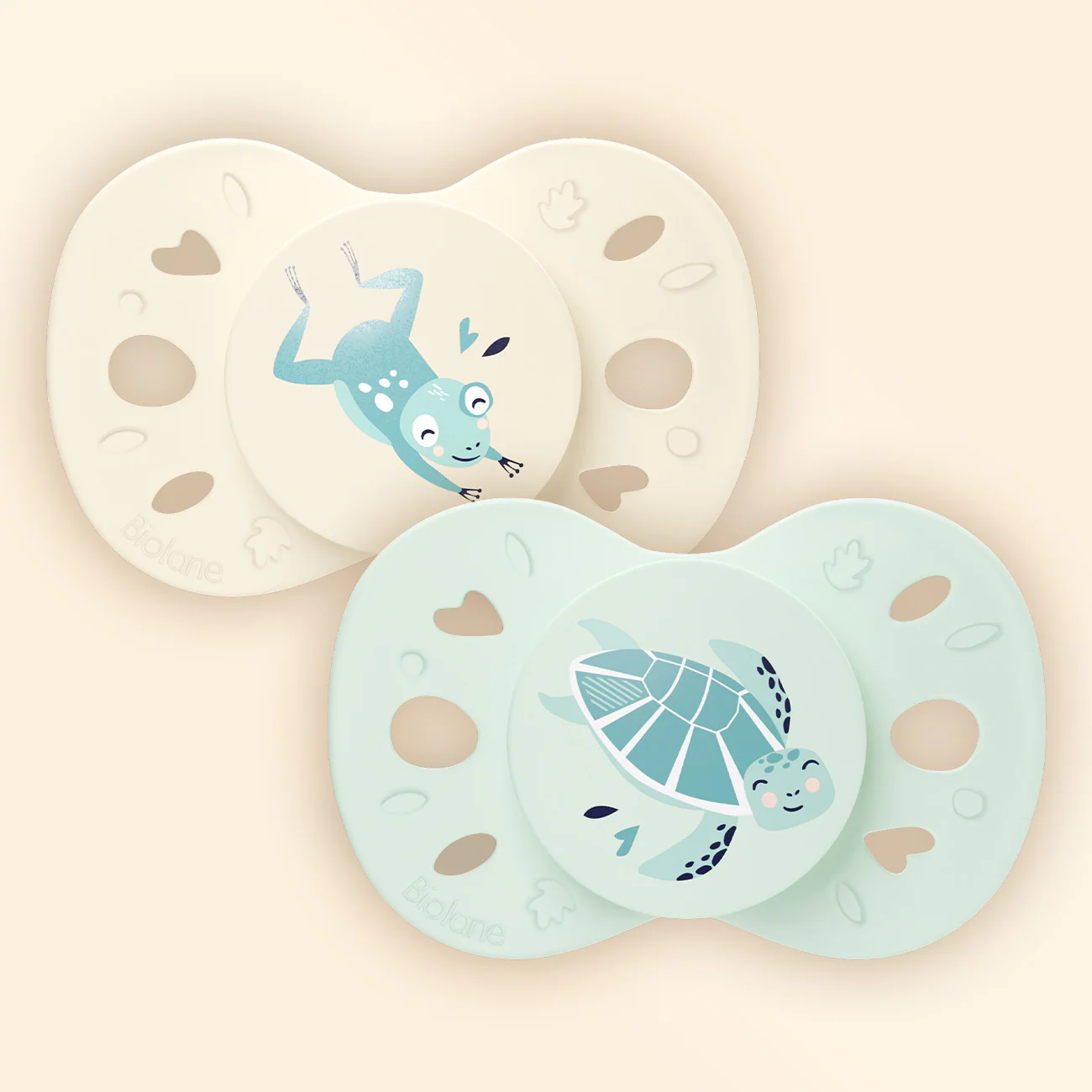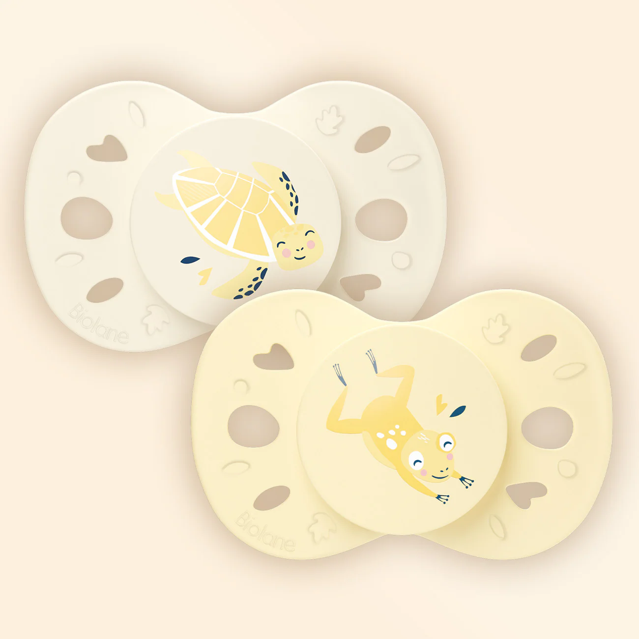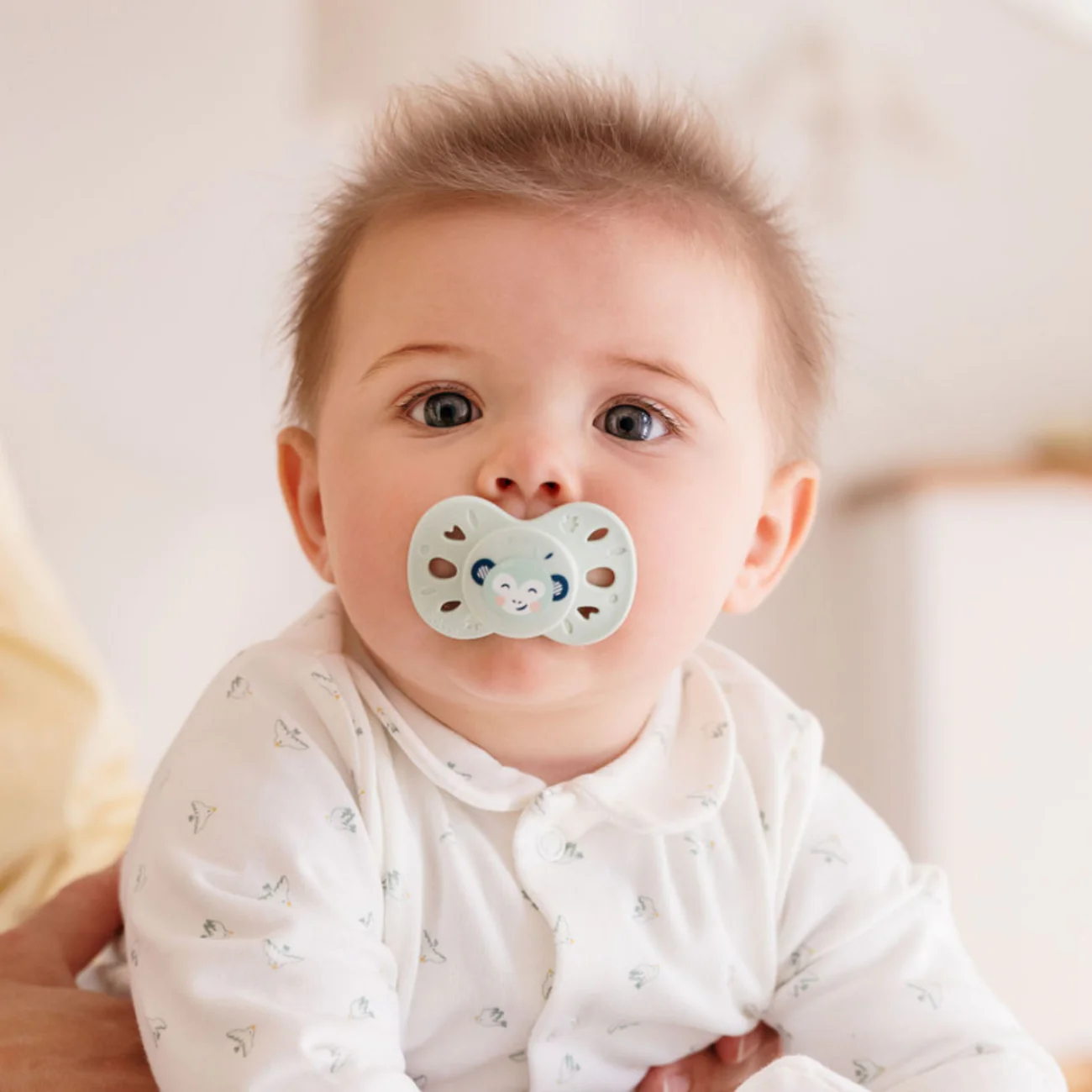 Nos sucettes en silicone extra-fines sont dotées d’une base 40% plus fine* que la moyenne des sucettes présentes sur le marché. Développées main dans la main avec des professionnels de santé et recommandées par l’UFSBD***, elles respectent le développement bucco-dentaire de votre bébé, sont très bien acceptées et conçues avec des matériaux renouvelables•.