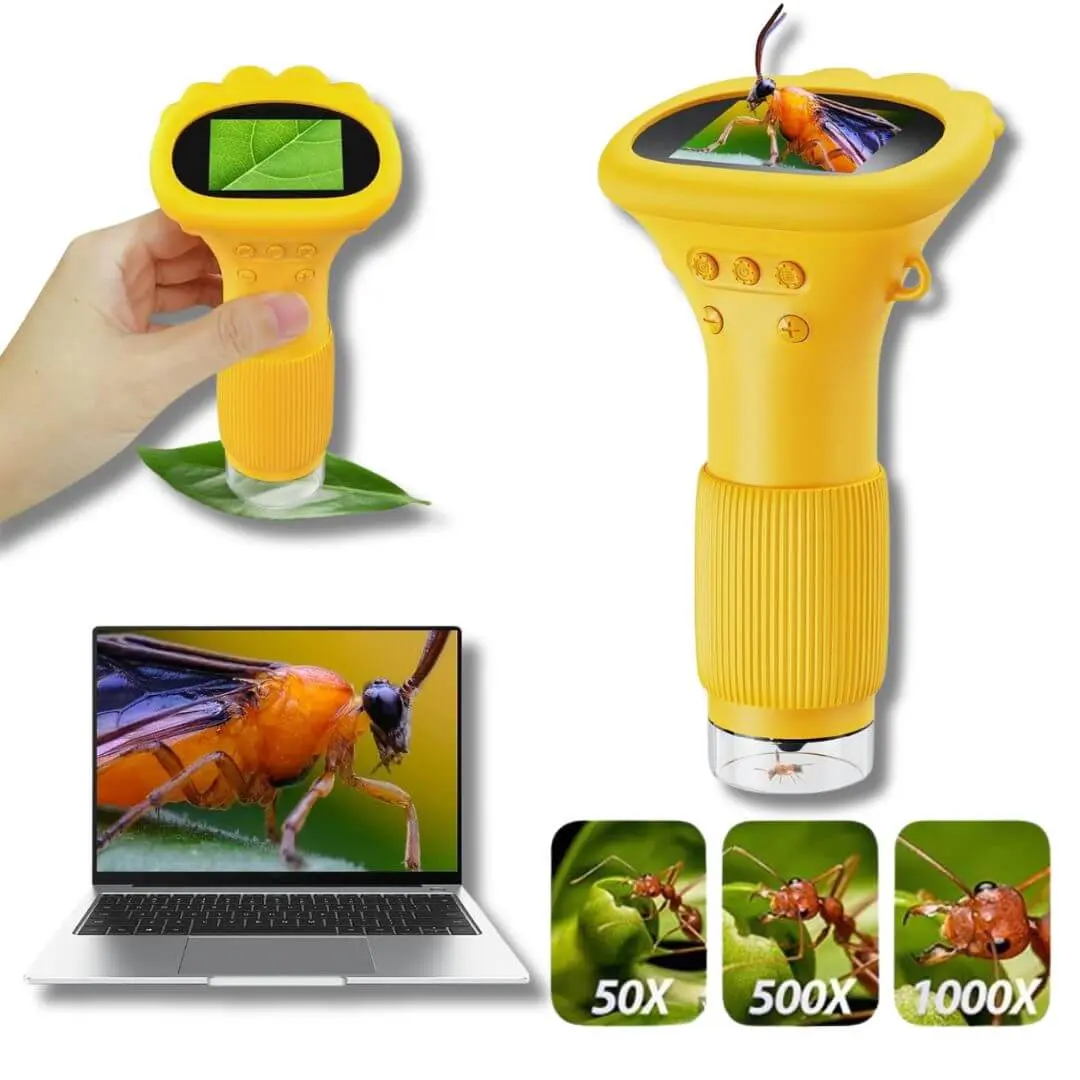 Le microscope de poche MicroExplorer™ est un microscope enfant portable innovant, conçu pour éveiller la curiosité scientifique. Avec un grossissement de 500x à 1000x, il permet d’observer la nature, les insectes, les plantes et les objets du quotidien dans leurs moindres détails.