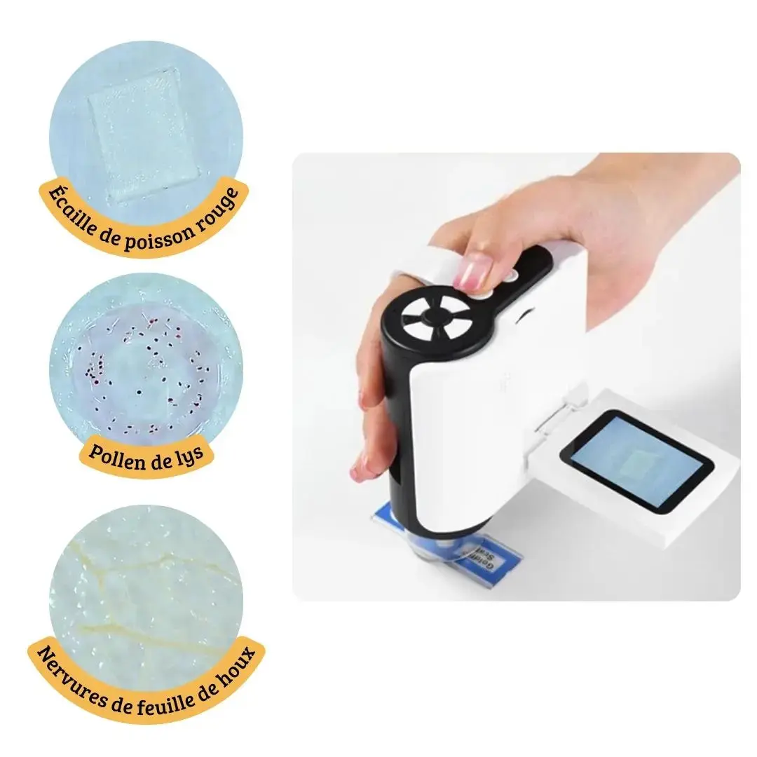 C’est un microscope éducatif pensé pour l’initiation scientifique : zoom jusqu’à 1000x, LED réglables, enregistrement HD.