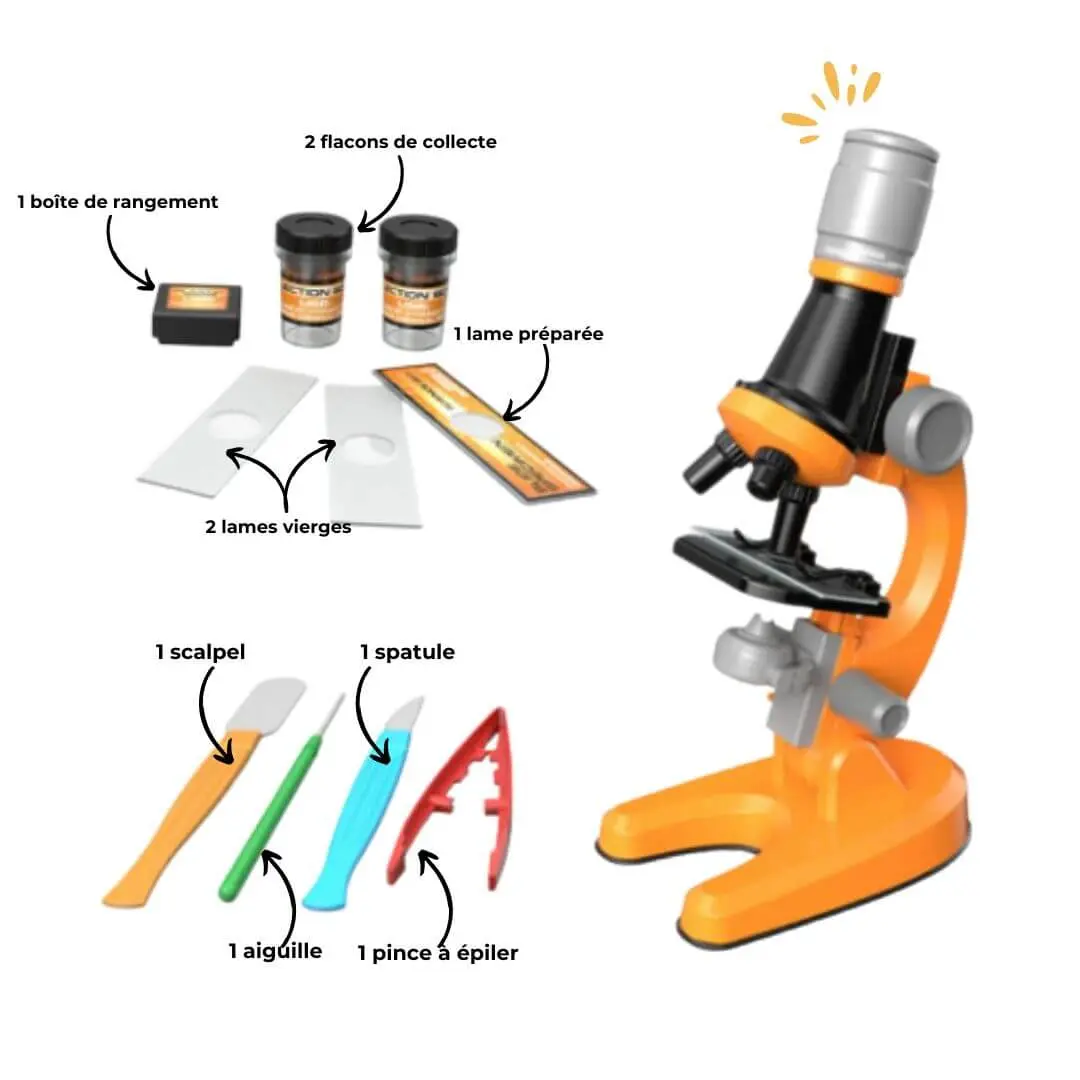 Le kit inclut lames préparées, flacons de collecte et outils pratiques pour initier les enfants aux méthodes scientifiques. Ils apprennent à préparer et observer leurs propres échantillons facilement.