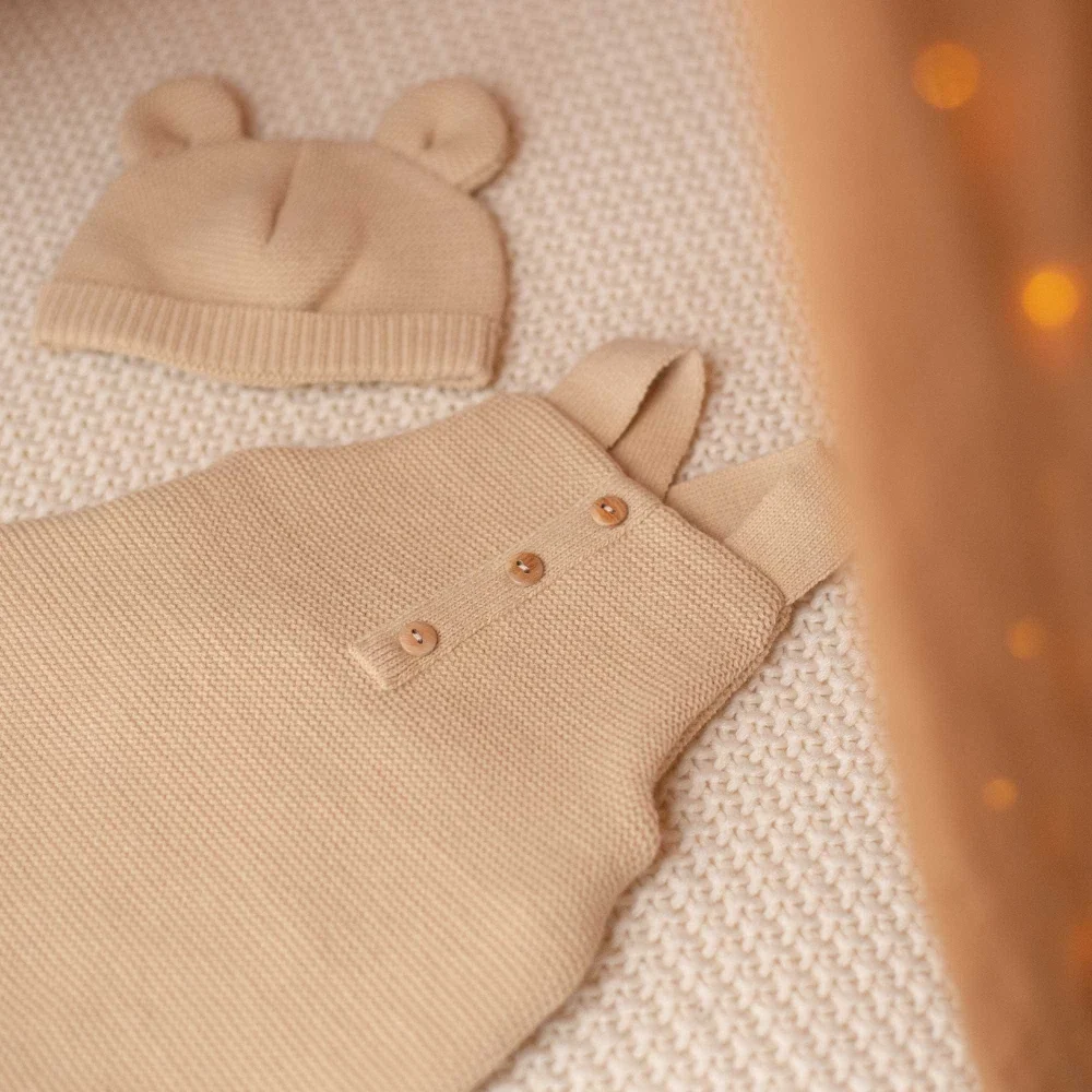 • Un bonnet de naissance en coton bio pour garder la tête de bébé bien au chaud