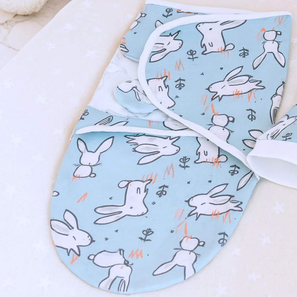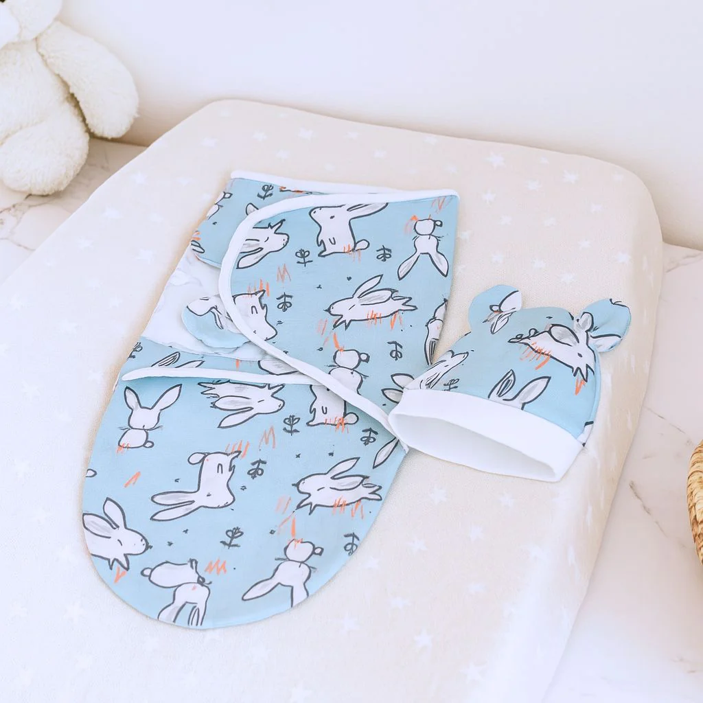 Avec ses jolis lapins sur fond bleu et son bonnet assorti à oreilles, ce nid d’ange à motif lapin n’est pas seulement adorable : il est aussi conçu pour offrir un maximum de confort. Il enveloppe bébé en douceur tout en laissant sa peau respirer grâce au coton léger et respirant.
