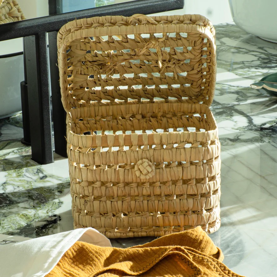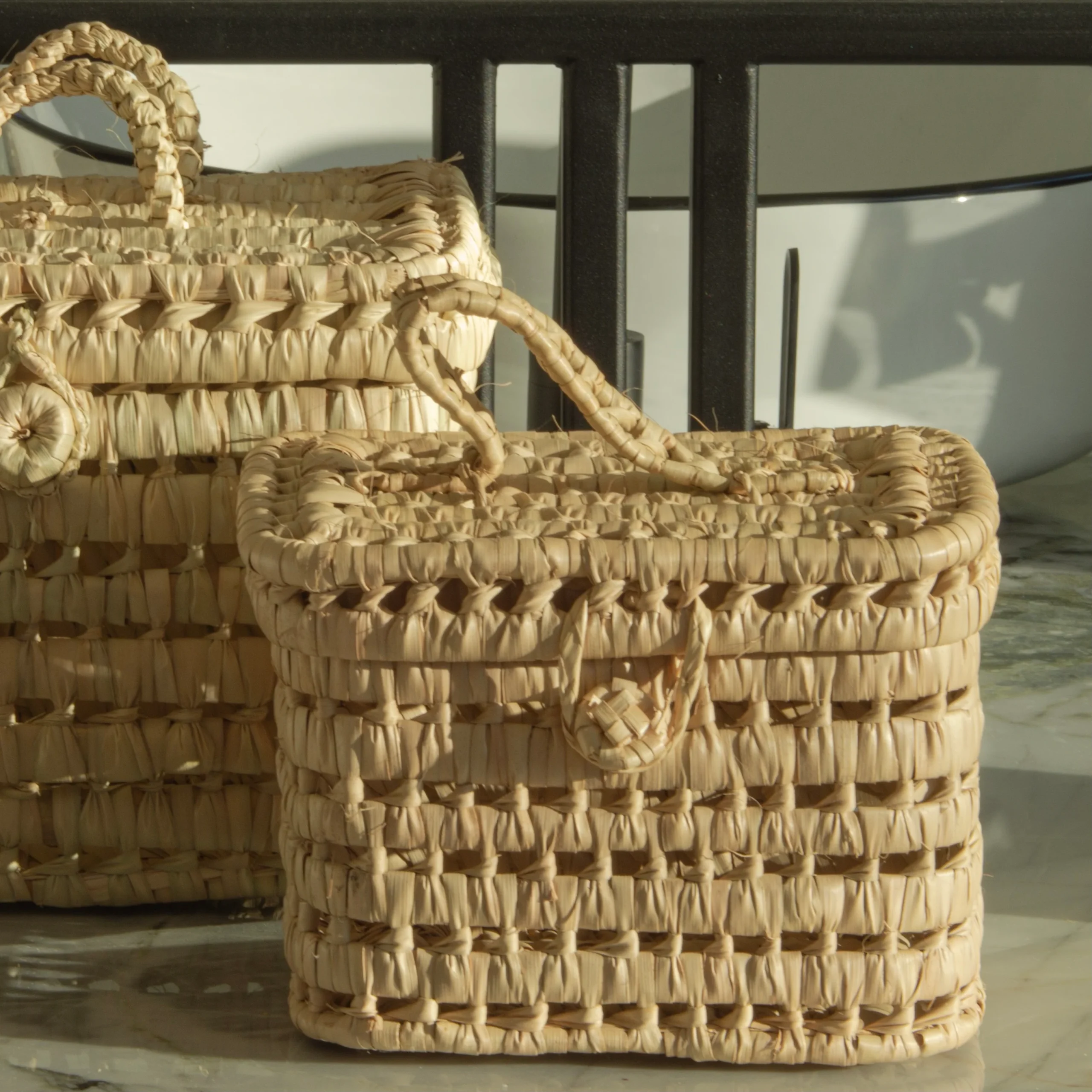 Issues de l’artisanat marocain, cette jolie vannerie en palme s’accorde à merveille à nos jolis couffins …