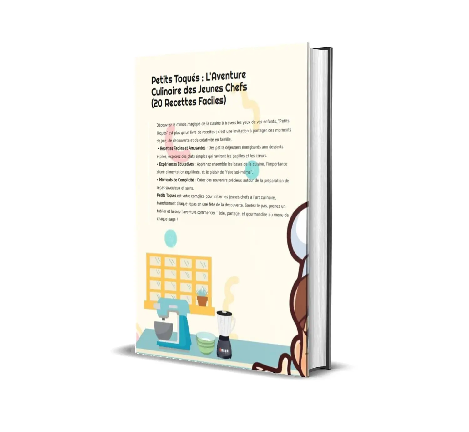 Merci infiniment pour votre intérêt et votre achat ❤️. Nous espérons que « Petits Toqués : L’Aventure Culinaire des Jeunes Chefs » inspirera vos enfants et fera de la cuisine un terrain de jeu et de découverte pour toute la famille.