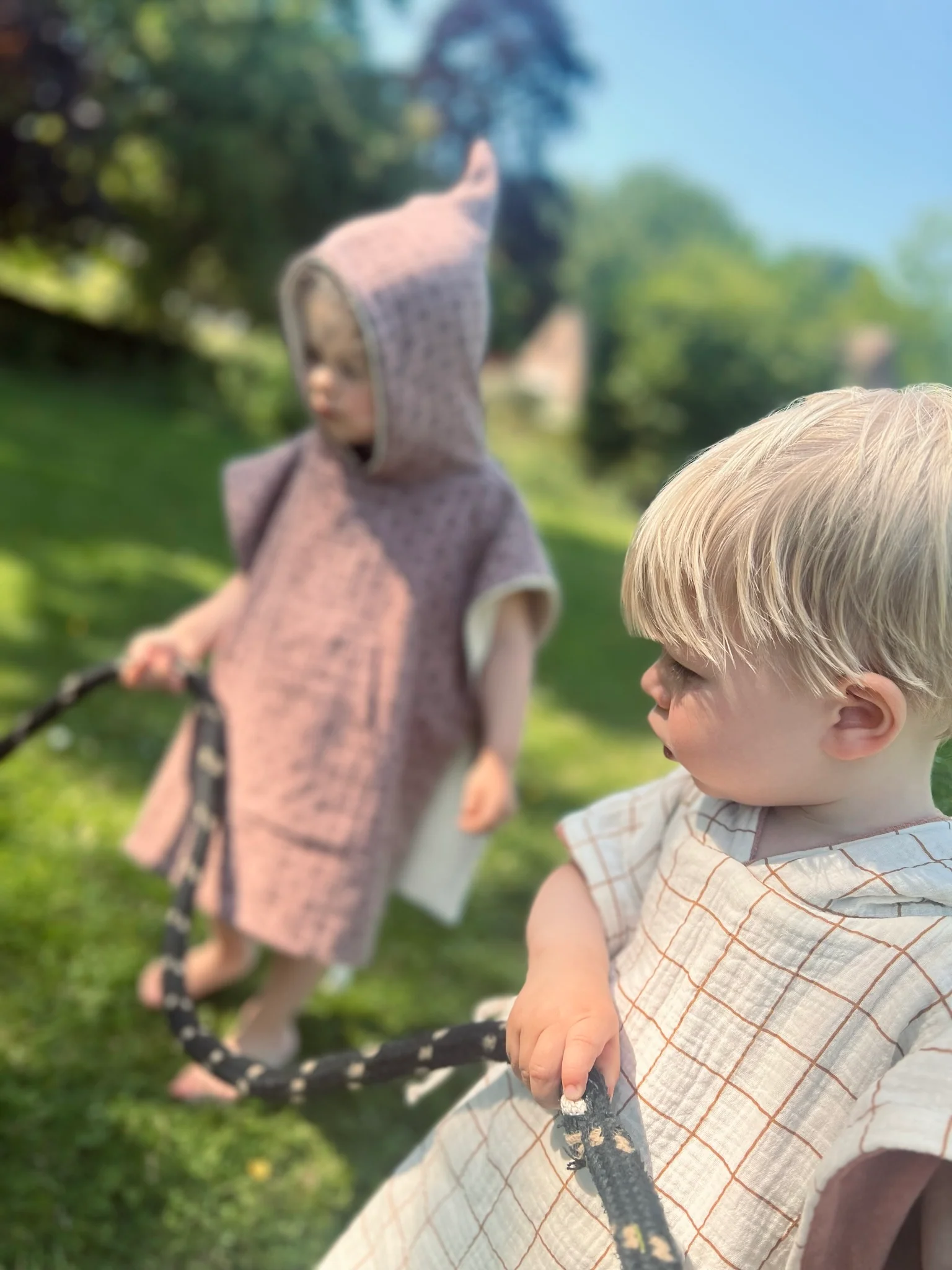 Découvrez notre poncho de bain 100% coton, une pièce incontournable et pratique pour les petits de 1 à 3 ans. Réversible et douillet, il garde au chaud après le bain ou à la plage.