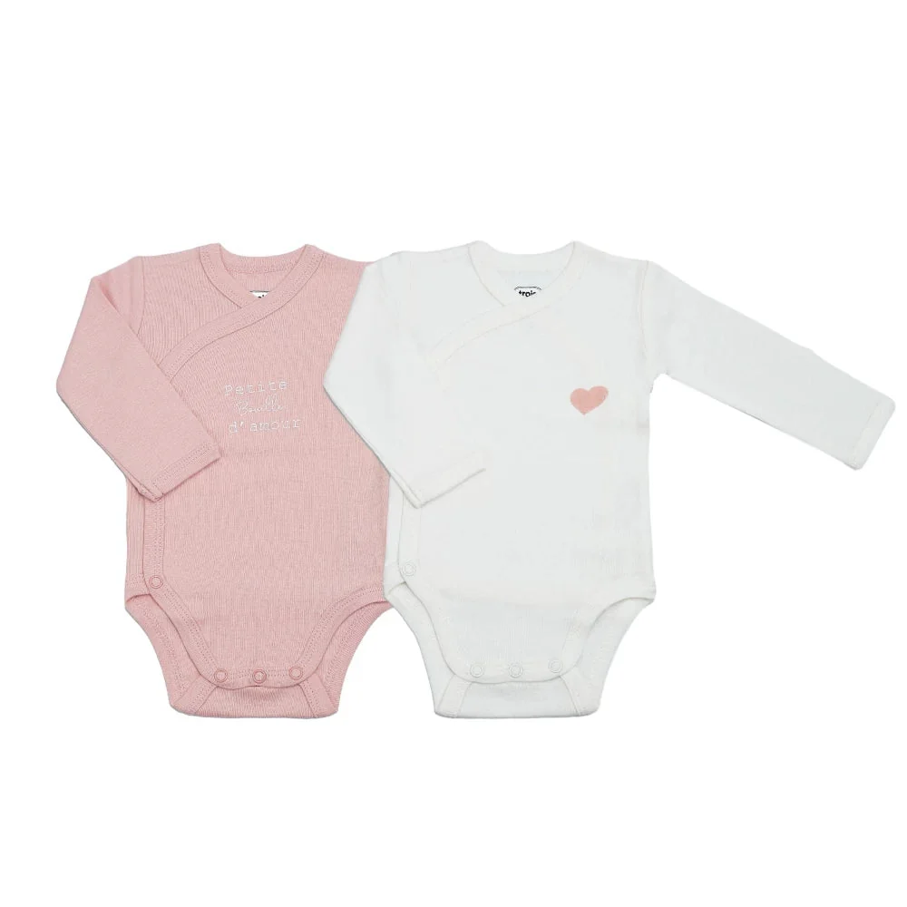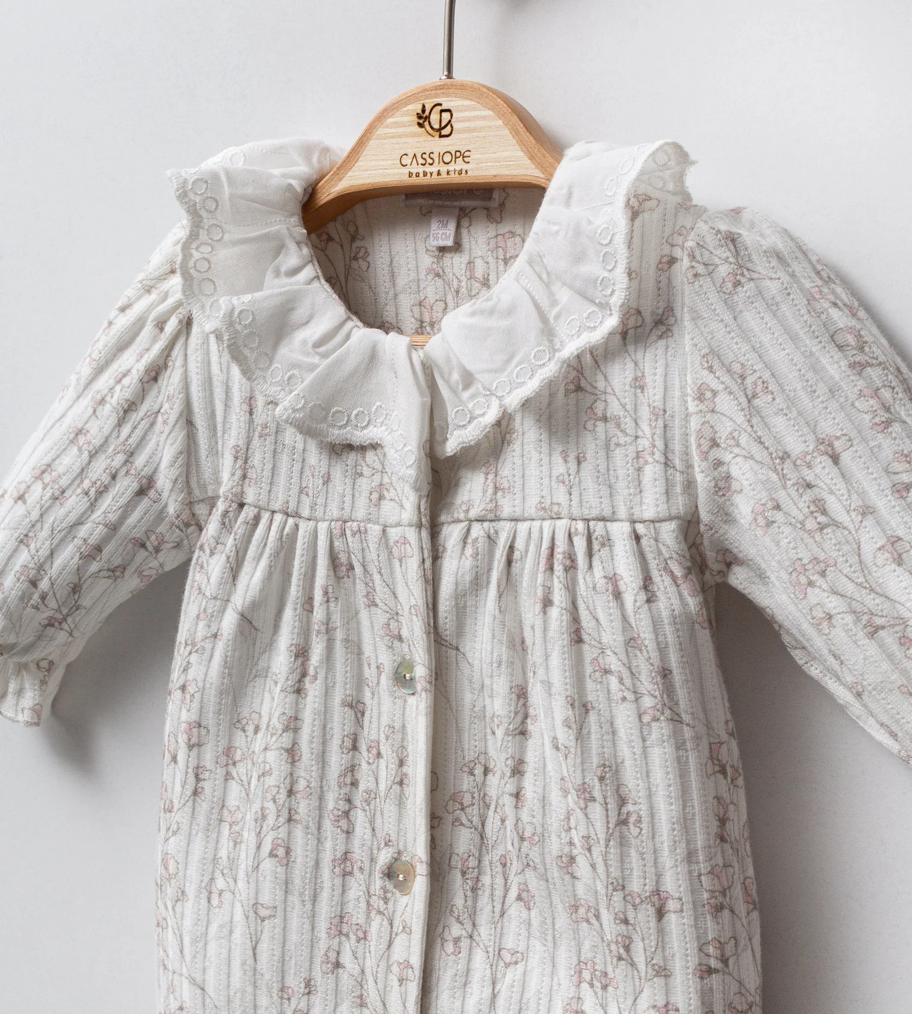 Pratique pour les parents, ce pyjama s’ouvre facilement sur l’avant grâce à des pressions, permettant d’habiller bébé rapidement sans le déranger. Des croquets subtils sur les rebords ajoutent une touche de style délicate, tandis qu’une broderie blanche côté cœur vient parfaire le design bucolique et tendance de ce dors-bien.