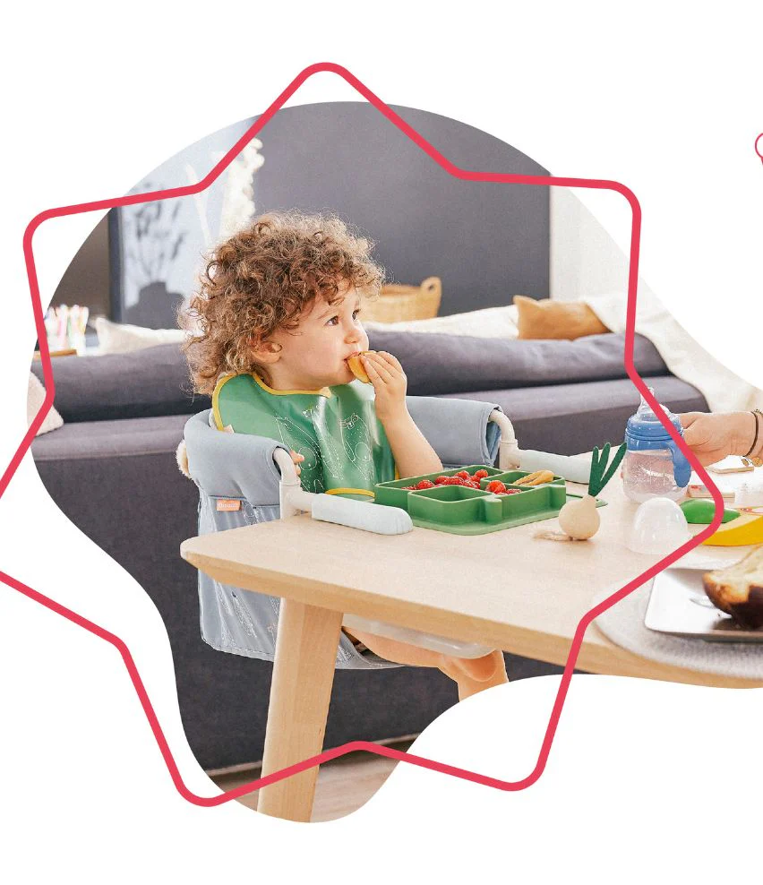 Au restaurant, chez des amis, votre enfant est confortablement installé pour manger où que vous soyez.