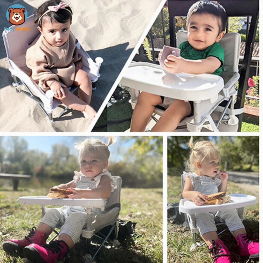 Toujours prêt pour un repas sûr et confortable avec notre réhausseur chaise bébé, que ce soit en voyage, au parc, ou à la maison.
