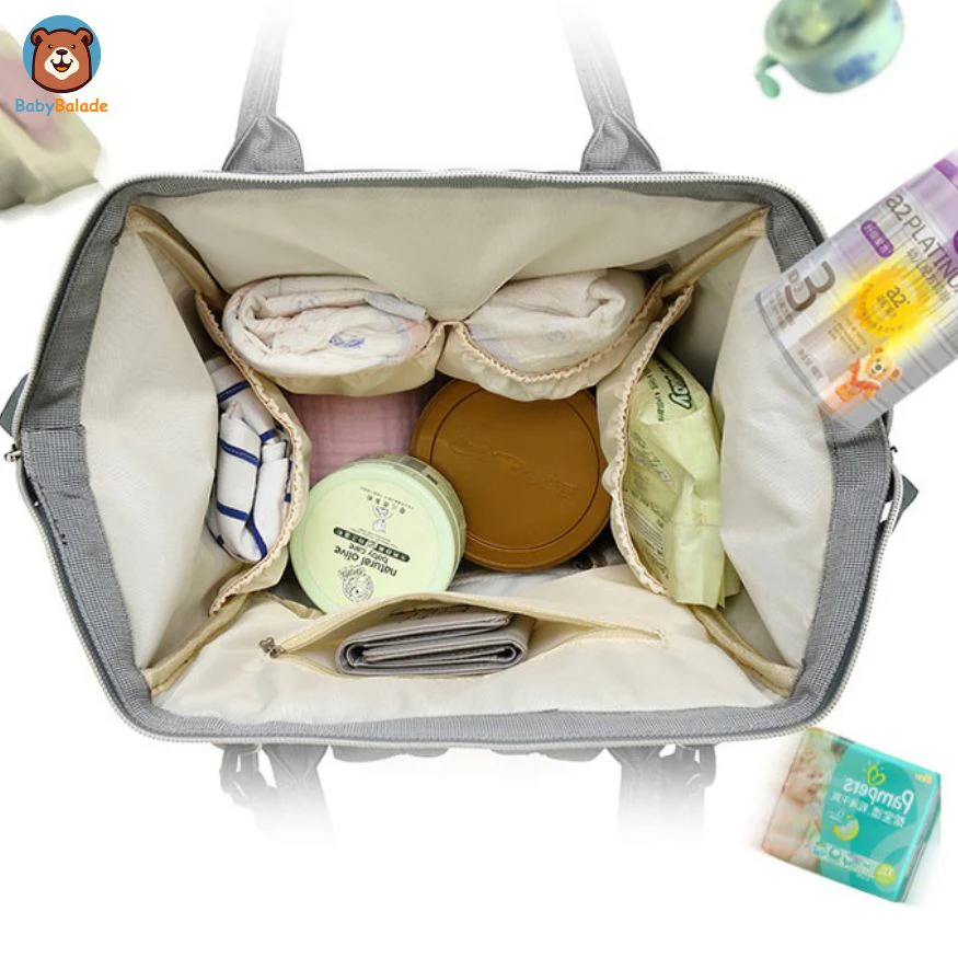 Grâce à ses nombreux compartiments et poches, rangez facilement couches, lingettes, biberons et vêtements de rechange pour une organisation parfaite en toute circonstance.