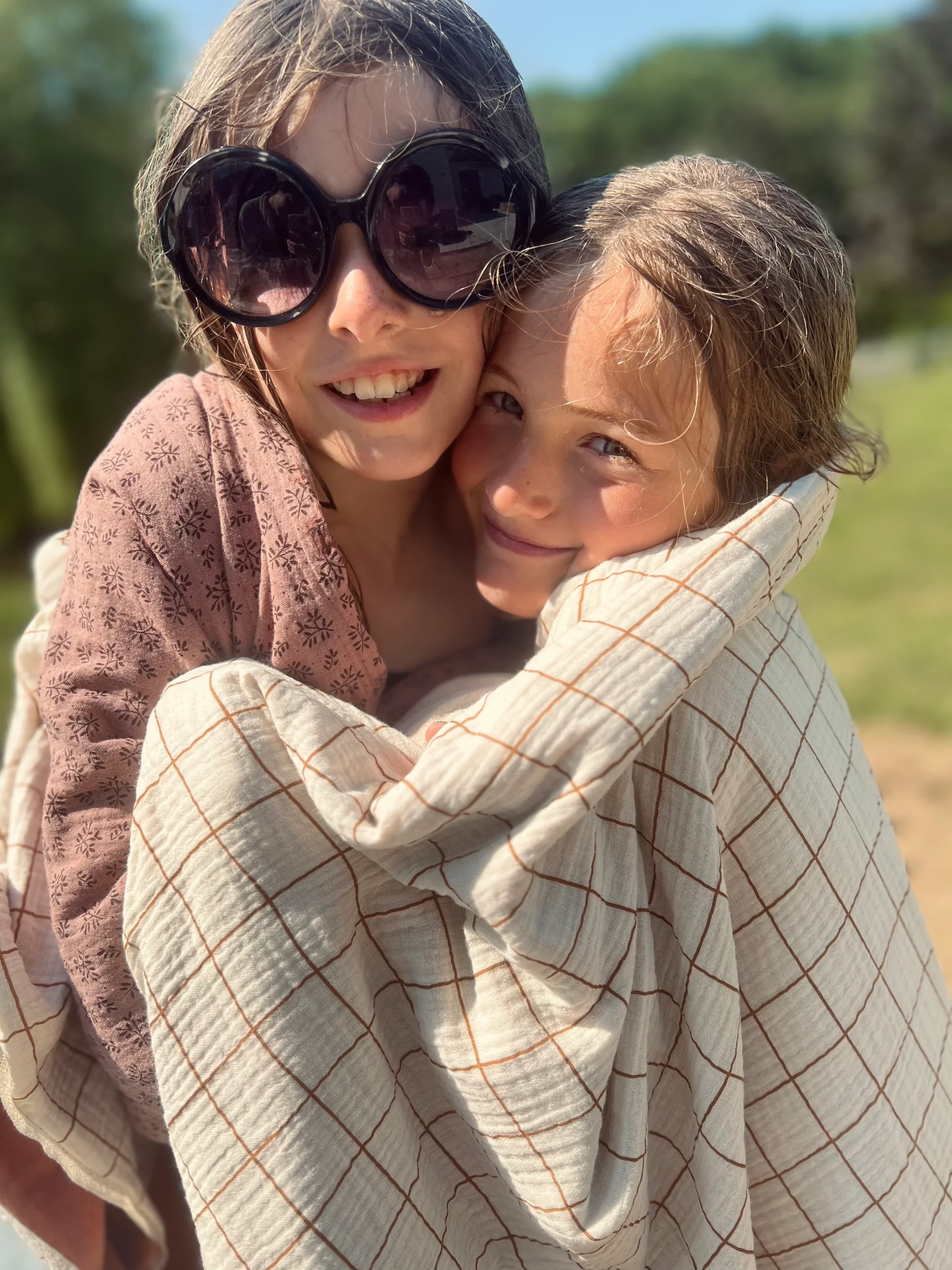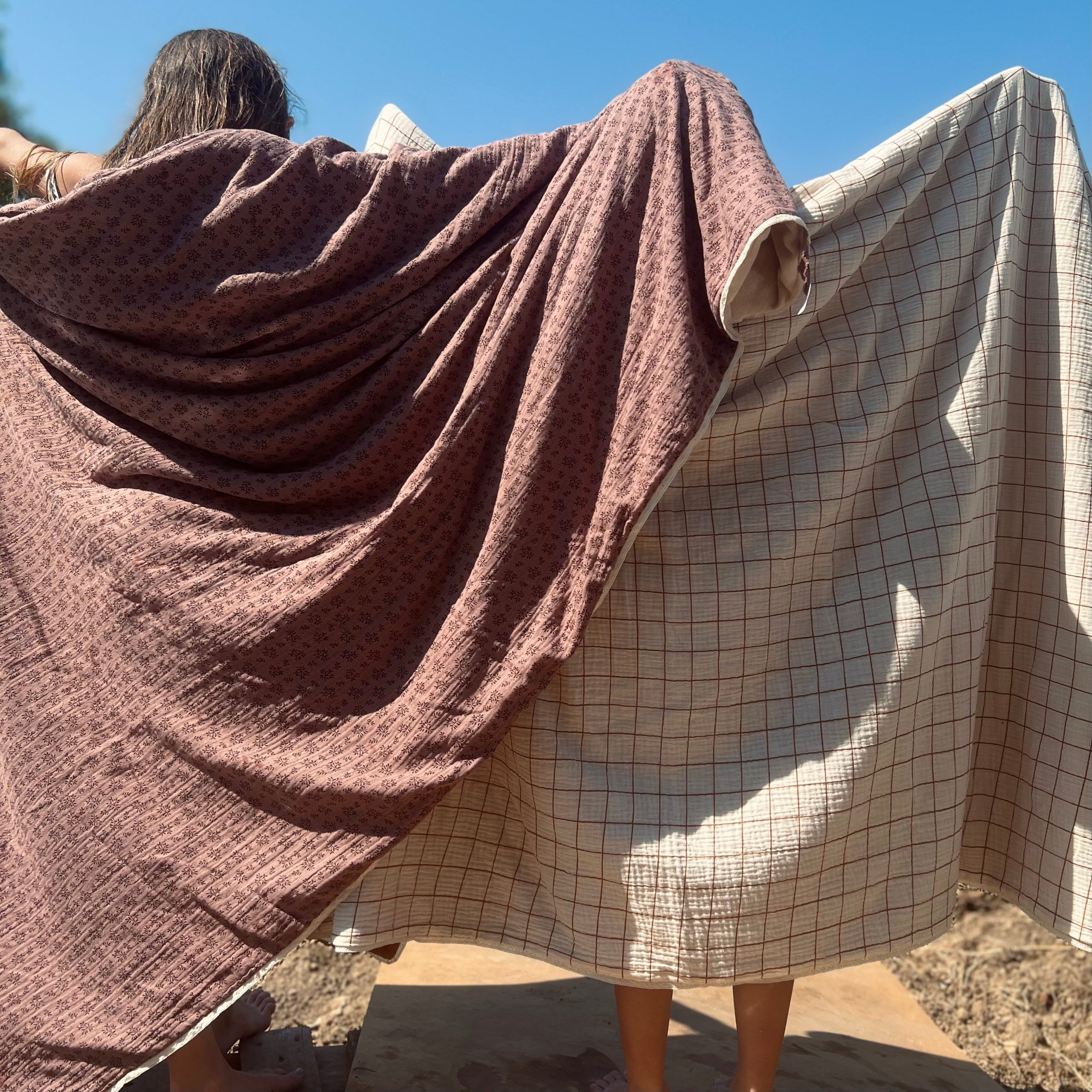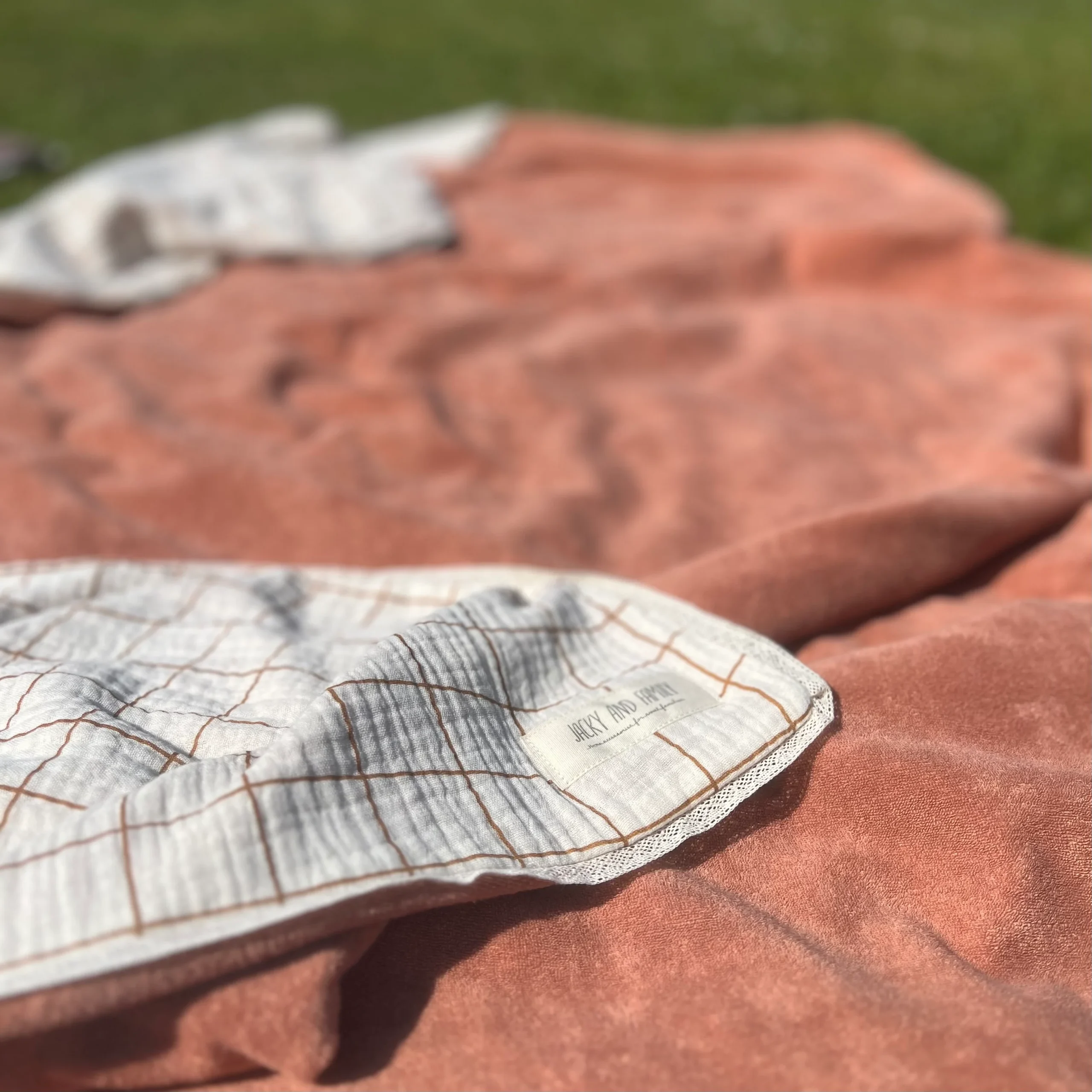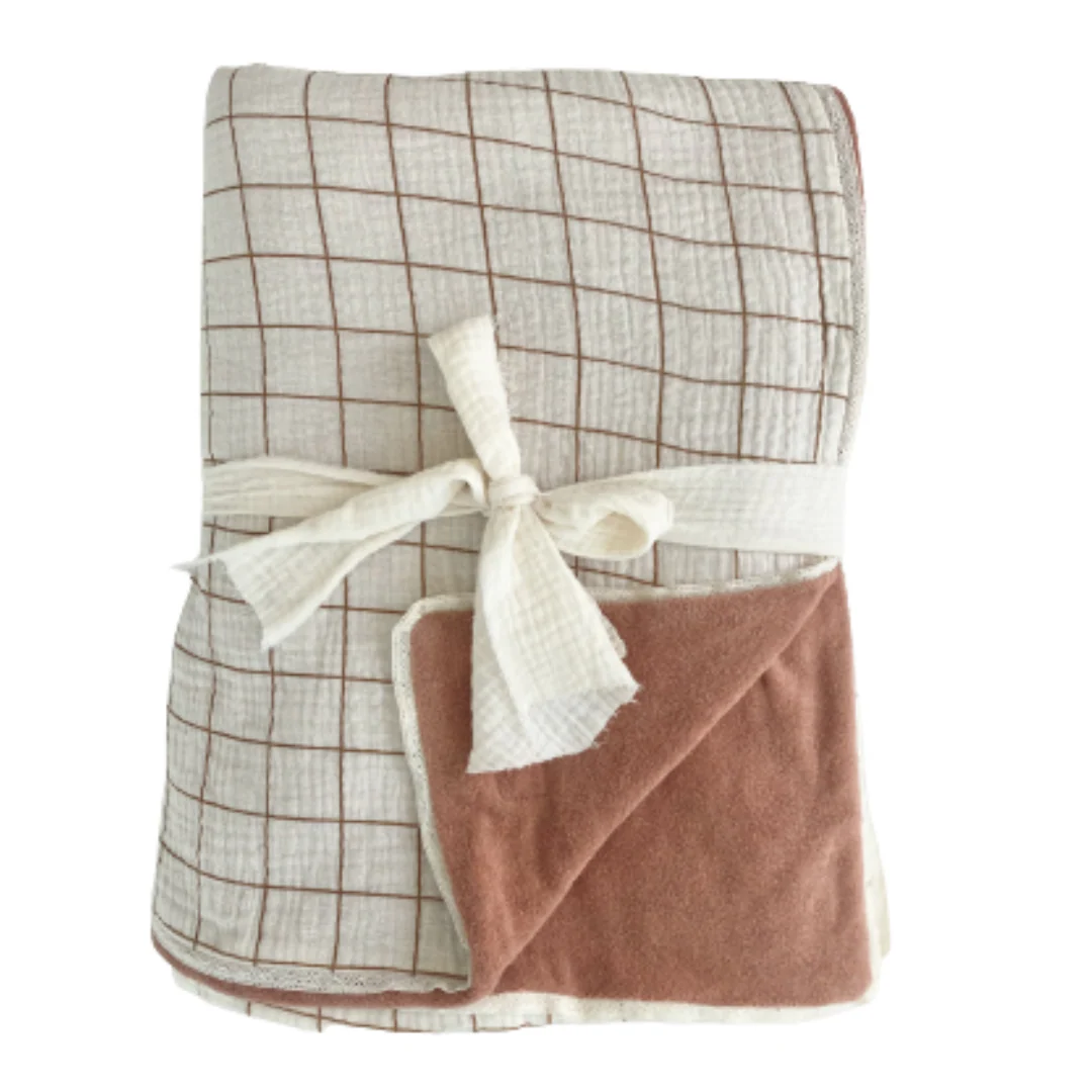 Découvrez notre jolie serviette de bain en double gaze de coton imprimé d’un côté, et en éponge de l’autre.