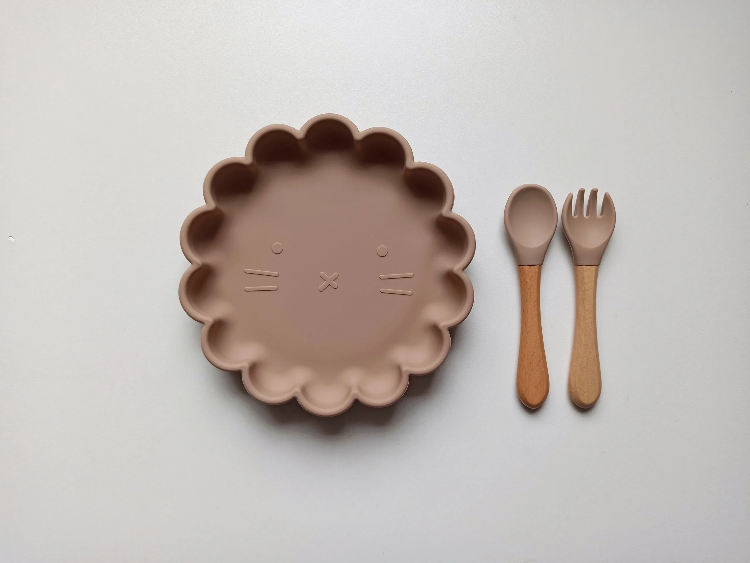 Set repas bébé Fleur et couverts personnalisés Taupe