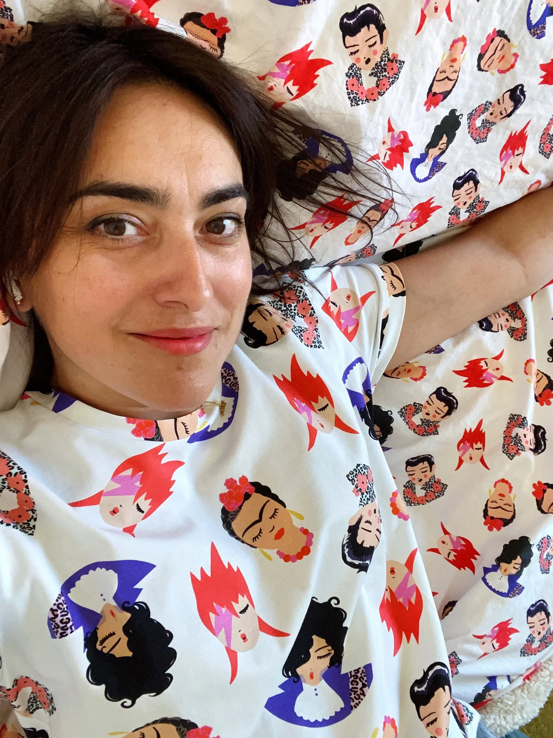 Le t-shirt IDOLES est fabriqué en France. Il est coupé dans un tissu en coton certifié GOTS. L’imprimé IDOLES est exclusif et a été dessiné par mes soins.