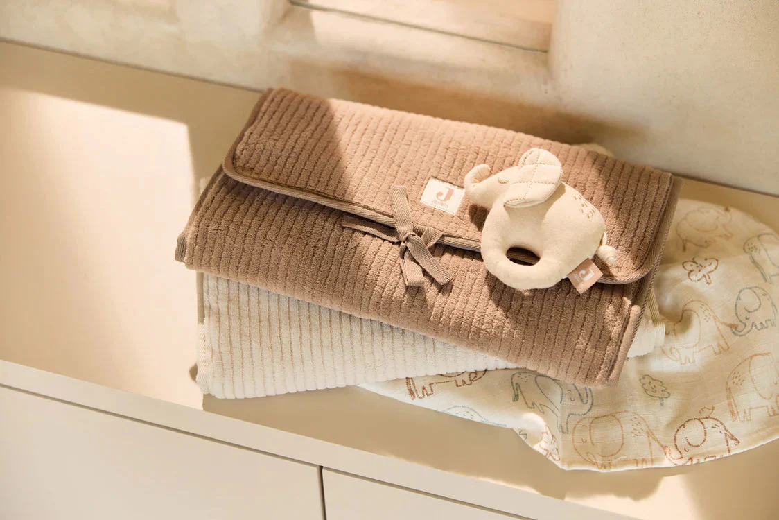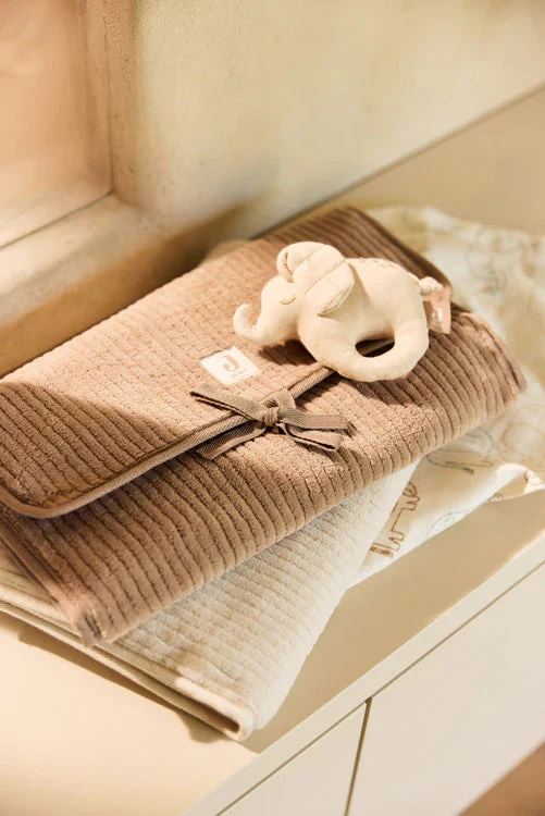 Pratique, doux et stylé, le tapis à langer nomade Cloudy Rib – Oatmeal est l’allié idéal pour les sorties avec bébé. Son tissu côtelé moelleux et son intérieur amovible à imprimé feuillage apportent une touche naturelle et raffinée. Compact et facile à plier, il se referme simplement avec un joli petit nœud, parfait pour changer bébé partout, avec confort et élégance.