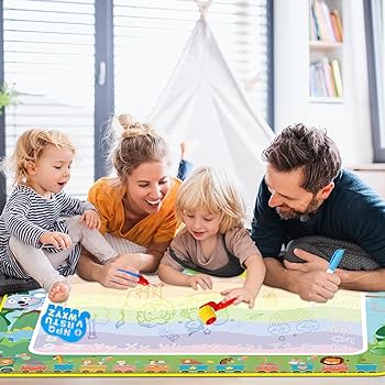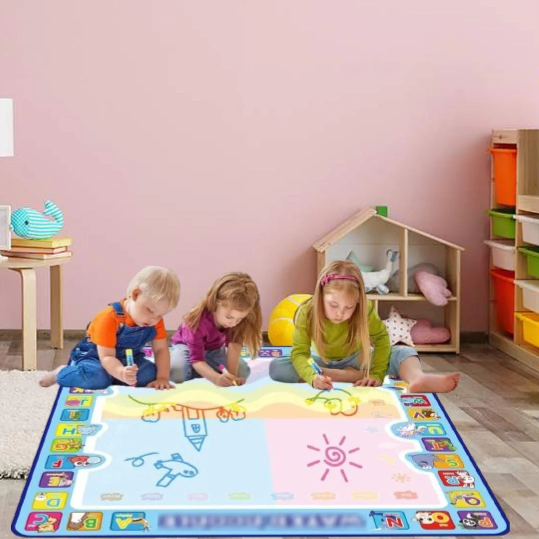 Déplier le tapis d eveil magique, remplissez le(s) stylo(s) d’eau propre et dessiner encore et encore sur le tapis magique. (Après 3-10 minutes, le dessin disparaît comme par magie)