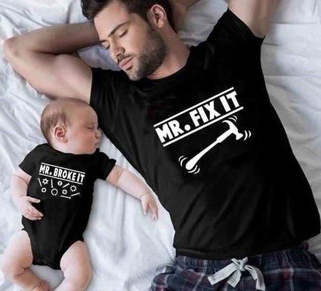 Un body ou t-shirt pour votre bout d’chou et un t-shirt pour papa, à porter en duo, en clin d’oeil à la filiation complice entre un père et son enfant.