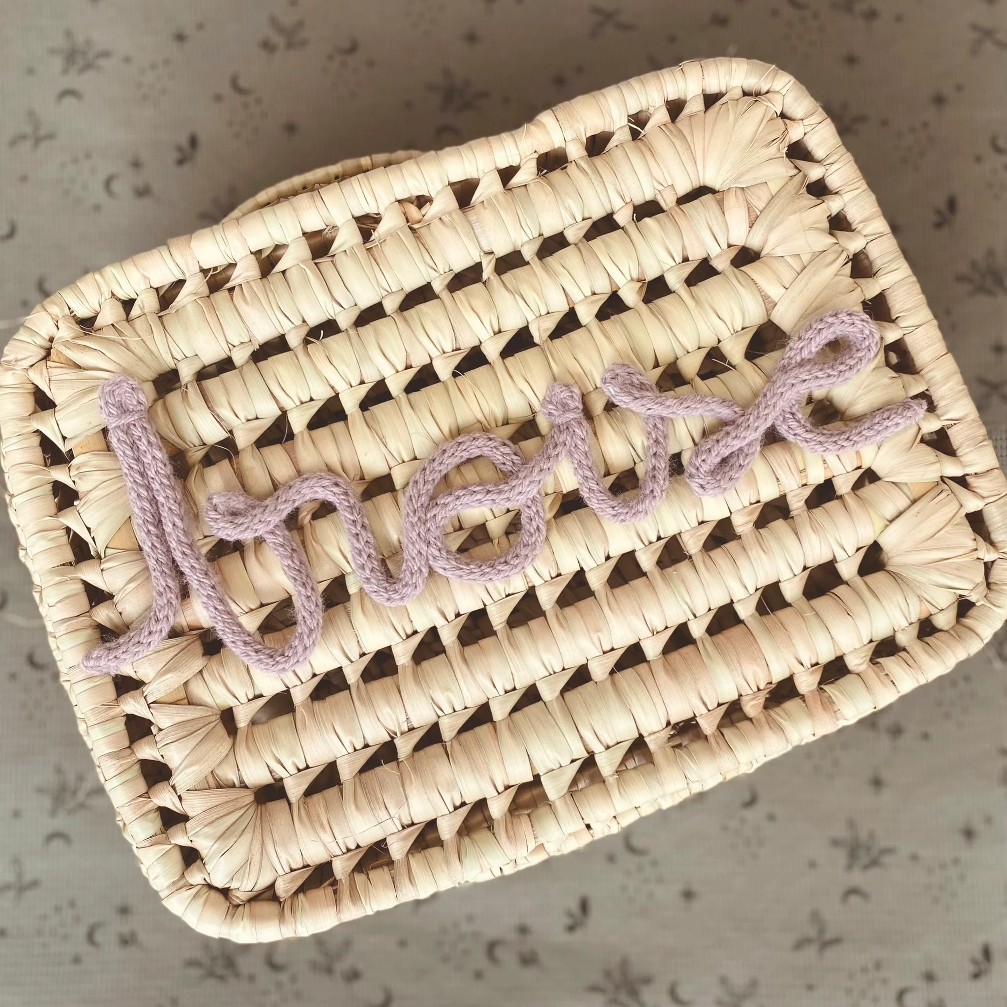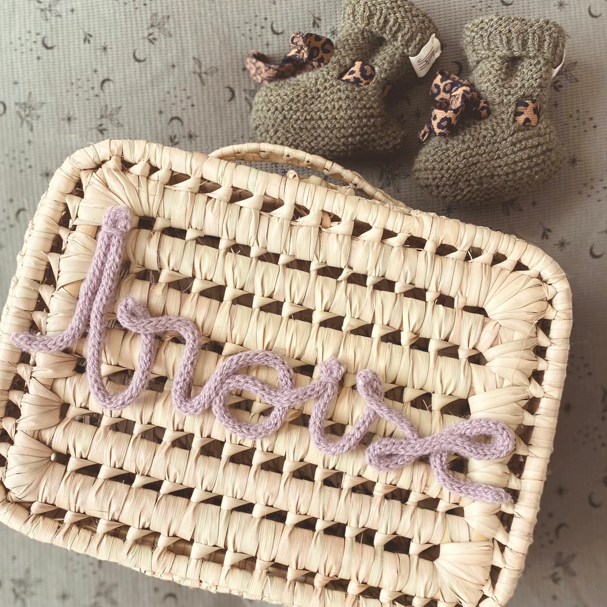 1 Lettre ou 1 mot / prénom en laine lilas, de 7 lettres maximum. (autres coloris disponibles sur demande).
