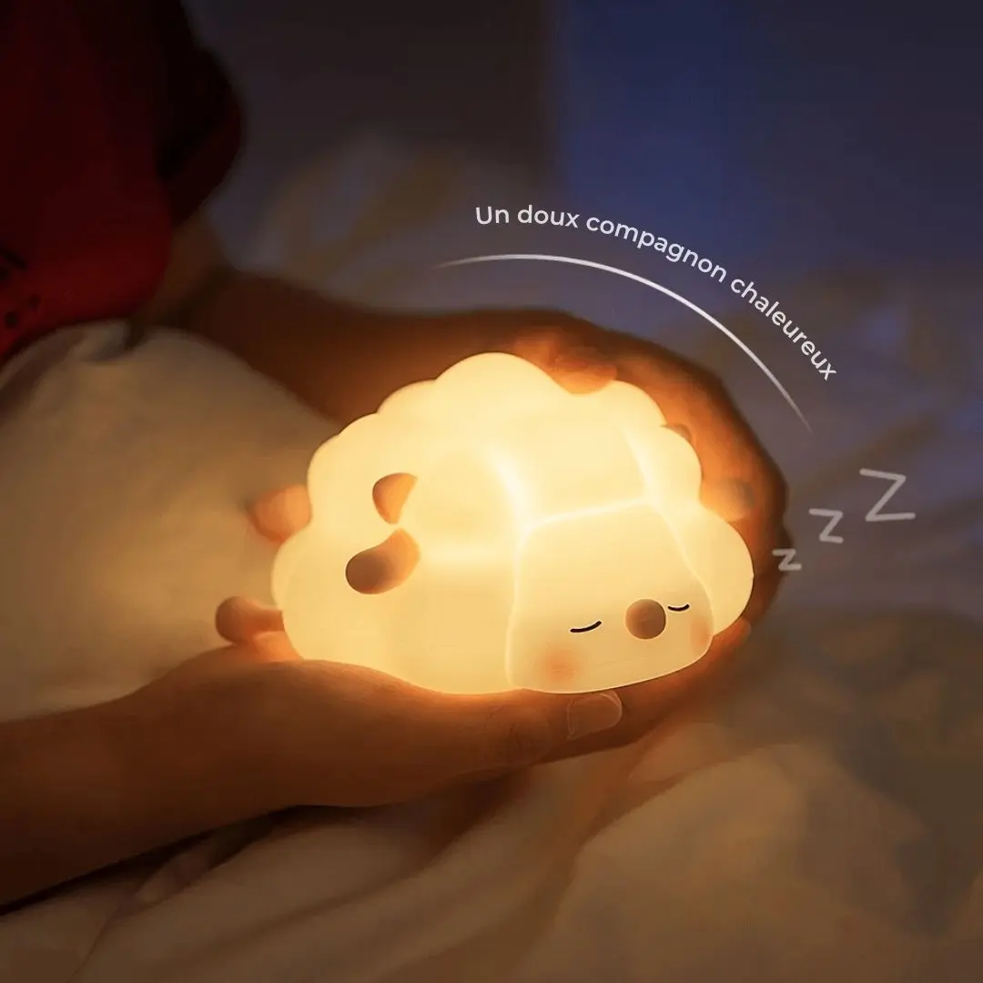 Cette veilleuse bébé en forme de mouton diffuse une lumière apaisante, idéale pour les enfants qui craignent le noir.