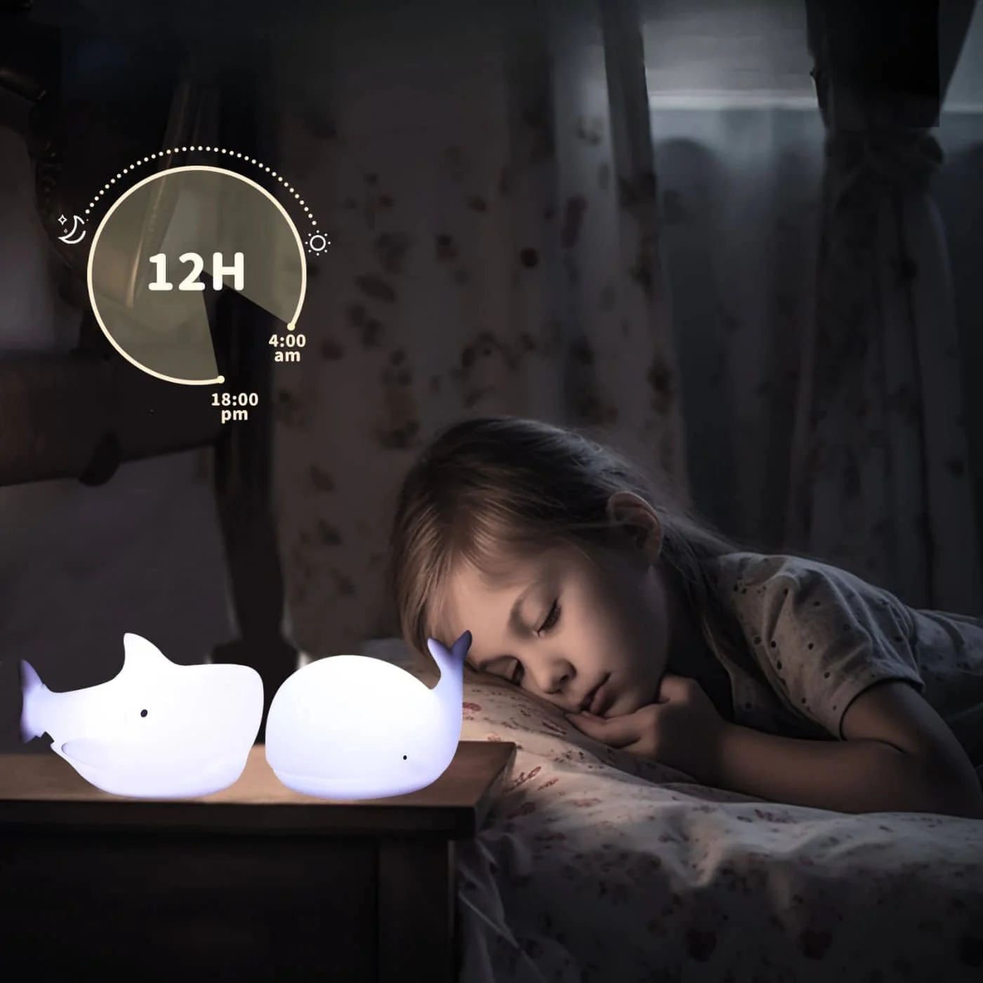 Avec une autonomie impressionnante de huit heures, notre veilleuse baleine accompagne votre enfant tout au long de la nuit. Plus besoin de se lever pour rallumer la veilleuse ou changer les piles. Profitez de nuits complètes et reposantes, en sachant que votre petit est veillé par sa fidèle compagne lumineuse.