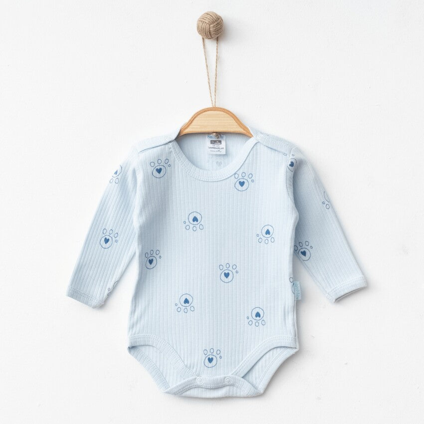 Body bébé Côtelé bleu pastel et petites pattes (1, 3, 6, 9 et 12 mois)