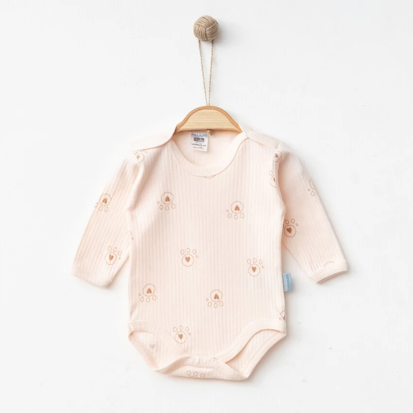 Body bébé Côtelé rose pastel et petites pattes (1, 3, 6, 9 et 12 mois)