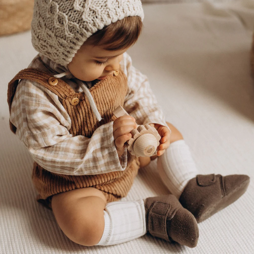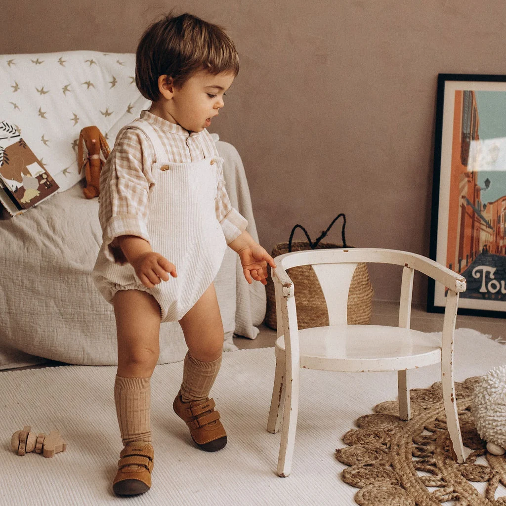 Barboteuse à bretelles bébé « Eden » évolutive en coton BIO velours côtelé noisette