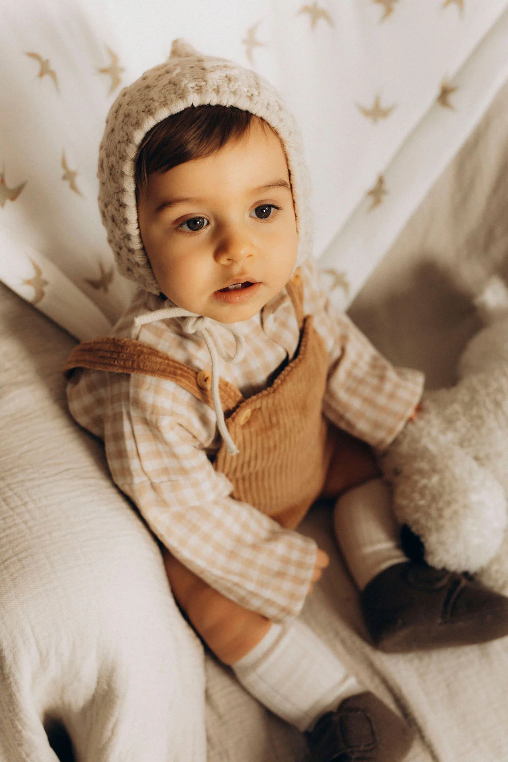 Gilet de berger bébé « Romy » fausse fourrure mouton sherpa écru doublé coton forêt