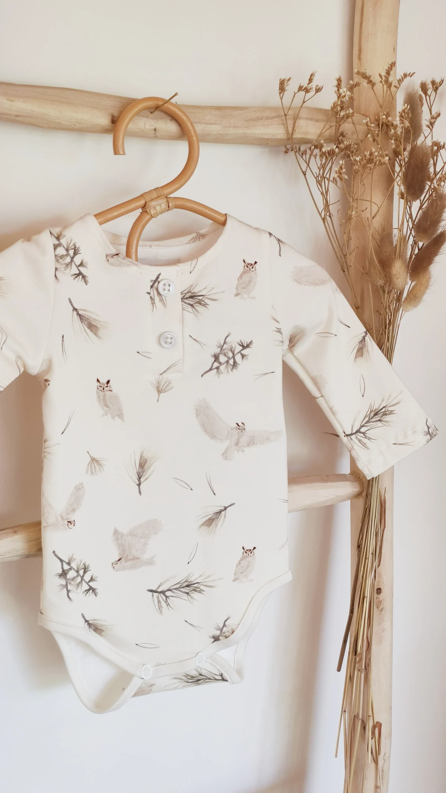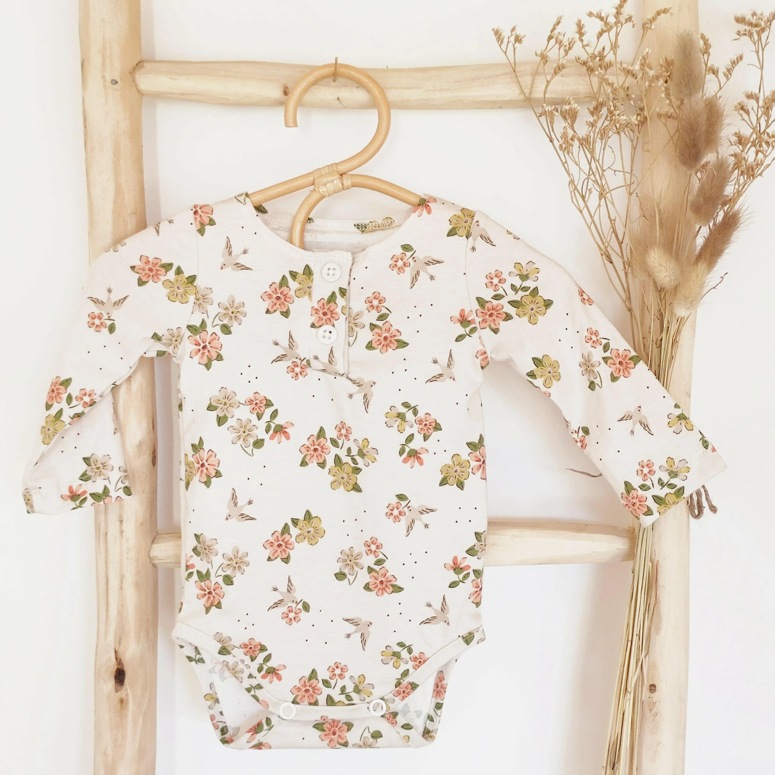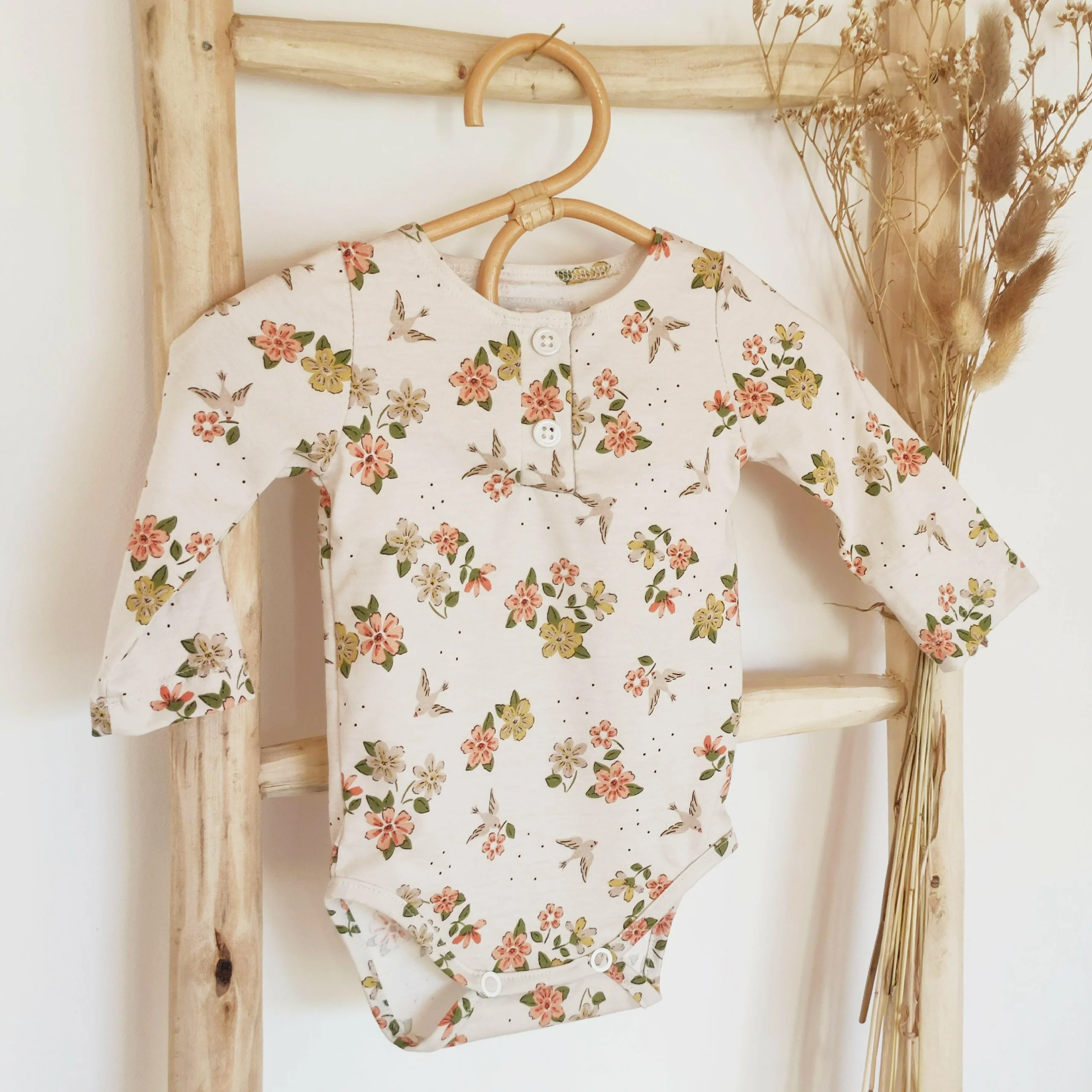 Body bébé « Sacha » à manches longues et col pressionné en jersey de coton BIO « Oiseaux »