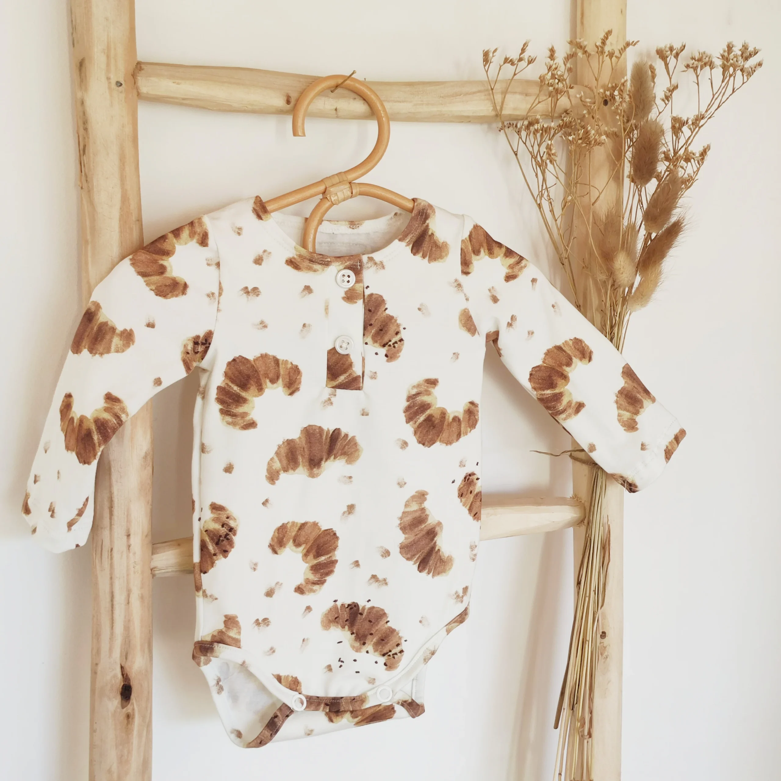 Body bébé « Sacha » à manches longues et col pressionné en jersey de coton soyeux écru « Croissant »