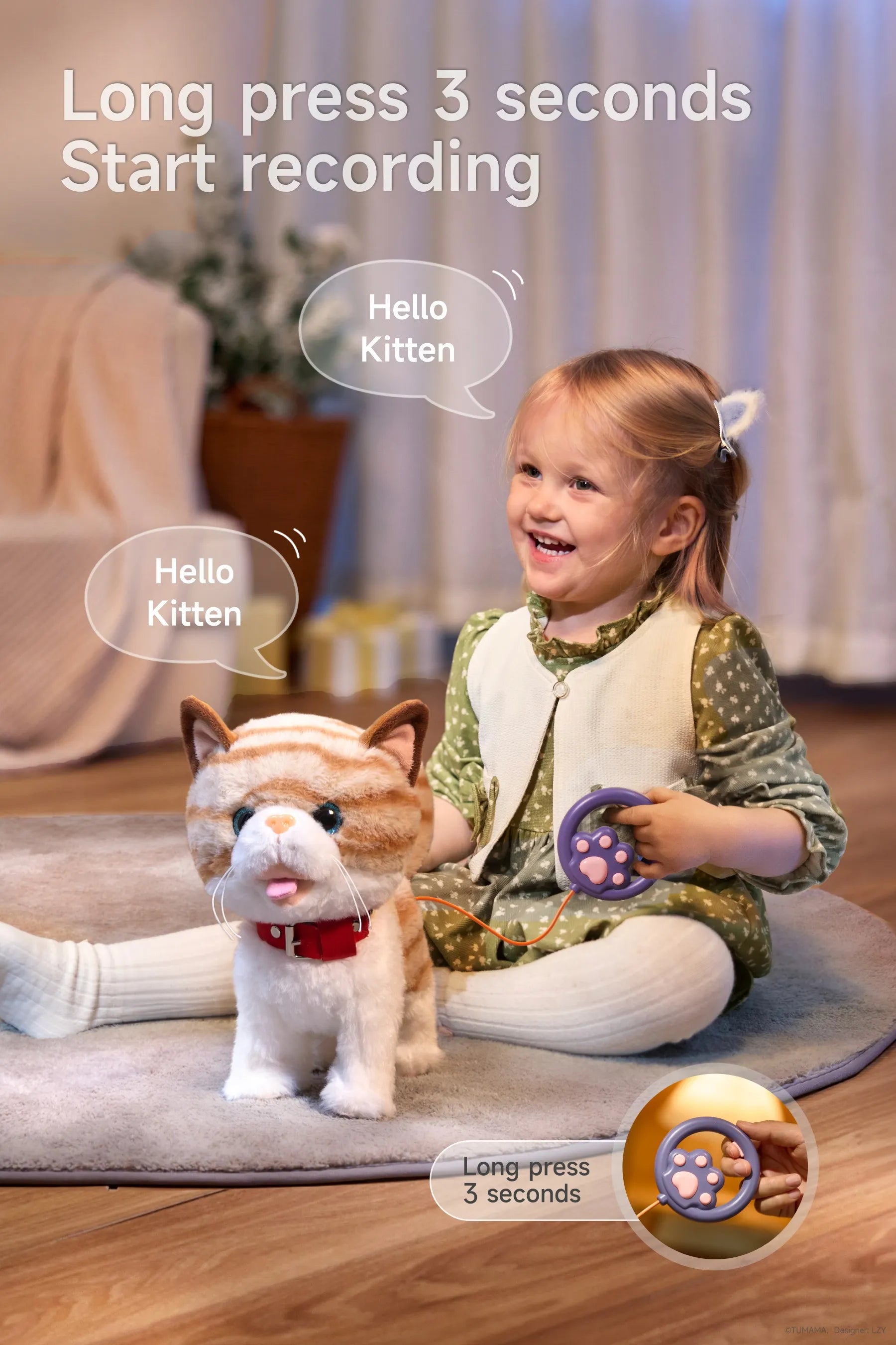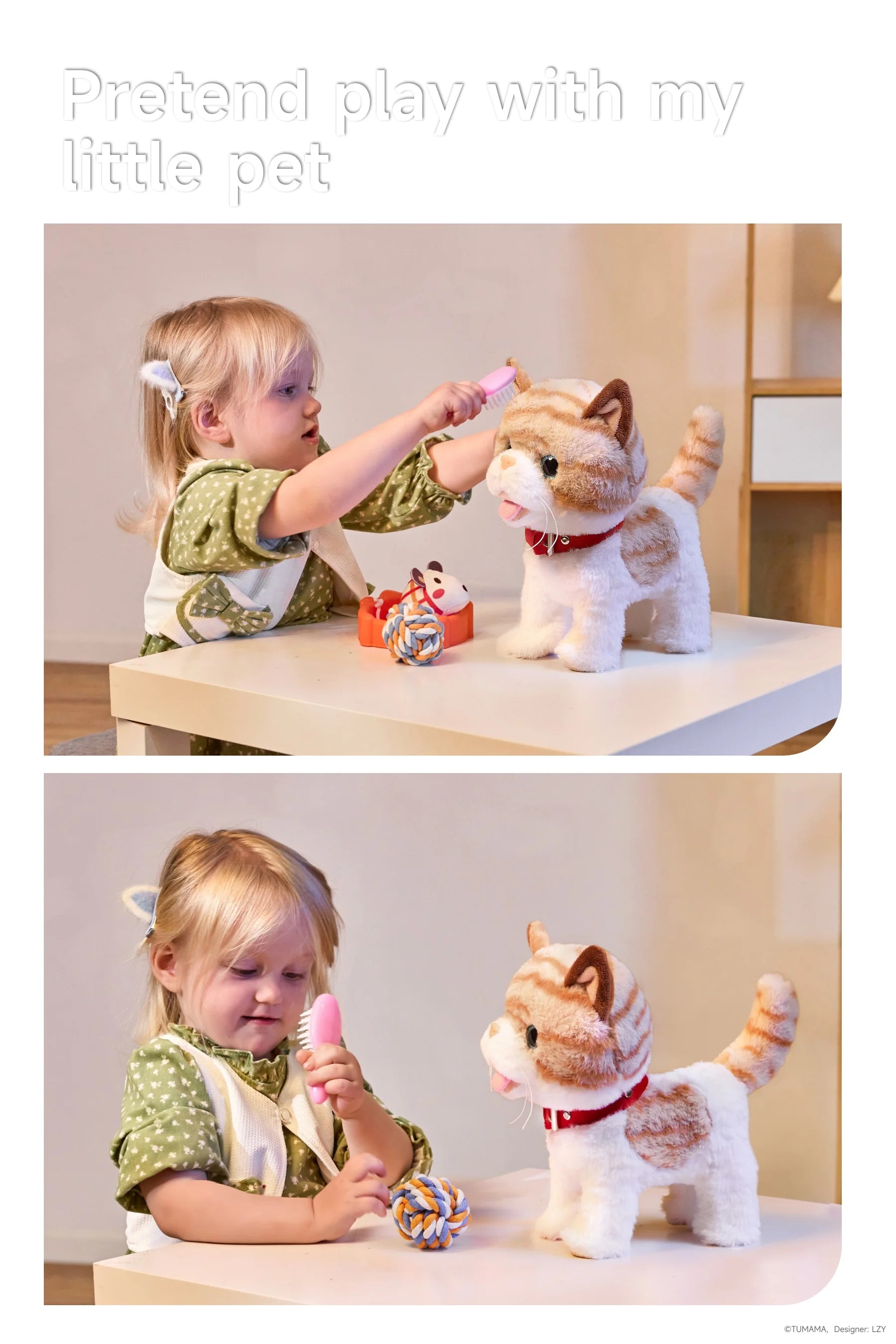 Les enfants seront ravis de prendre soin de leur jouet électronique en peluche pour chat, développant ainsi leur empathie et leur responsabilité tout en profitant d’un jeu interactif. Connectez la laisse, appuyez sur le bouton de la poignée et regardez le chat prendre vie en marchant, en miaulant, en chantant et en remuant la queue. De douces caresses ou des applaudissements déclenchent d’adorables miaulements, améliorant ainsi les capacités d’écoute, d’attention et de perception.